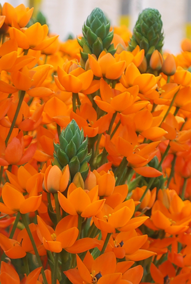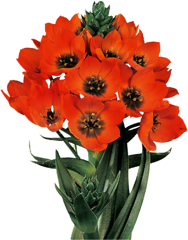 Perfect for both flowering potted-plant and cut-flower growers, Ornithogalum dubium requires minimal care and has an extraordinary shelve (vase) life. It is also visually dramatic, with firm stalks and bright inflorescence surrounding a striking black center.