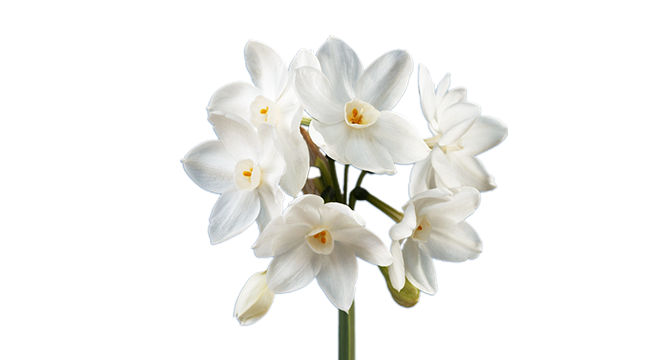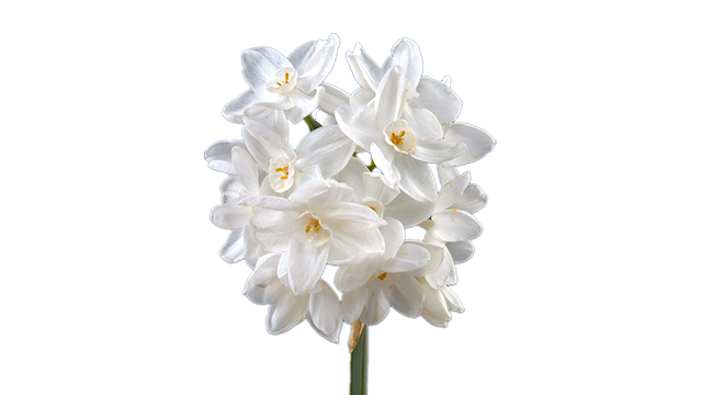 Narcissus paperwhites produce big clusters of snowy white, peppery scented flowers in a short period of time and are an ideal variety to grow indoors or in warm climates, where temperatures don’t go below 20°F.